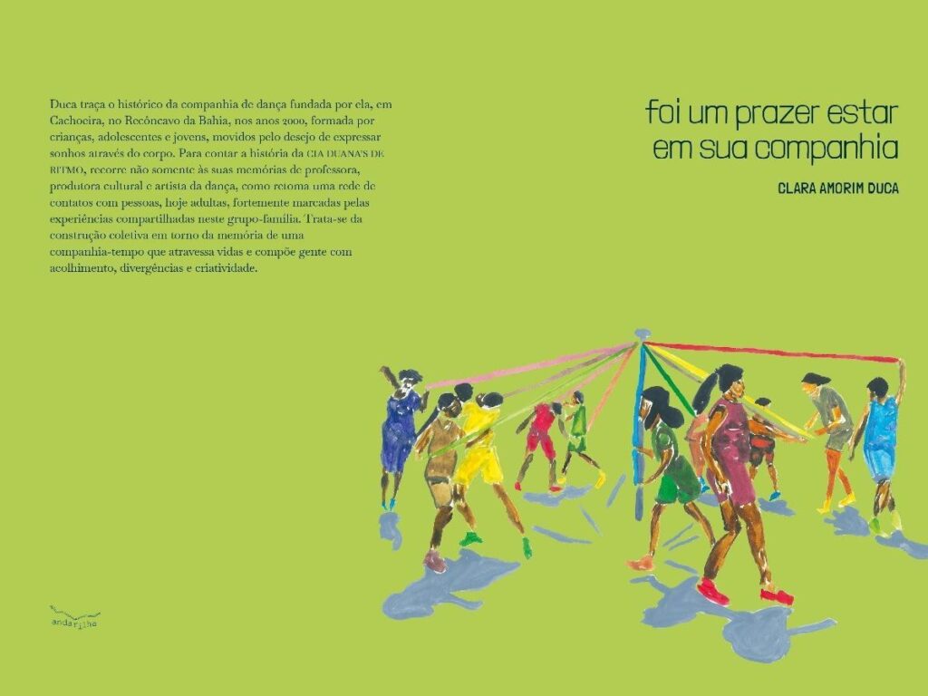By following this proposal to activate the counter-colonial quilombola imagination from a black territory, the idea of these collective writings was to incite the appropriation of the hegemonic language of the written word by women from the Reconcavo of Bahia. It was also to produce narratives guided by a perspective that is generally silenced when it comes to the official history of the region. This writing also brought different written formats. Clara Amorim Duca (2023), for example, intertwined her own memories with the voice of the young people who were part of her dance company, CIA DUANA’S DE RITMO, formed in the early 2000s. Their narratives show the importance of this group for their growth and professional training. Duca (2023) also talks about the lack of funding for social projects in Cachoeira and how the group became a family, “composed of many people who had dreams” (DUCA, 2023, p. 129):