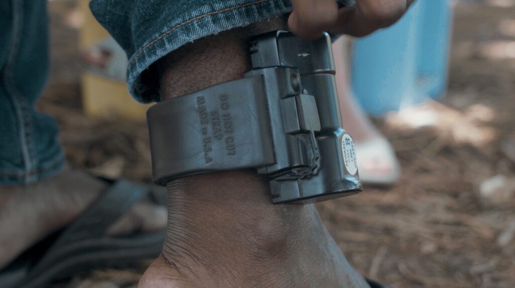 Through the documentary, we wanted to make the experience of electronic monitoring visible. Digital Detention shows how devices strapped on ankles and wrists bruise bodies and create medical conditions; how the constant requirements to recharge batteries or submit to check-ins through facial recognition generate stress and mental health problems; and how the devices produce additional stigmatization of asylum seekers. Overall, the film shows how electronic monitoring is another form of detention, rather than an “alternative” to being detained. This type of surveillance is both inhumane, unnecessary, and a result of the lobbying power of the private prison industry, which sponsors the campaigns of politicians who, in turn, support their expanding network of for-profit detention. We wish to warn citizens against the negative consequences of the spread of digital borders and confinement into our communities, an issue which should concern us all.